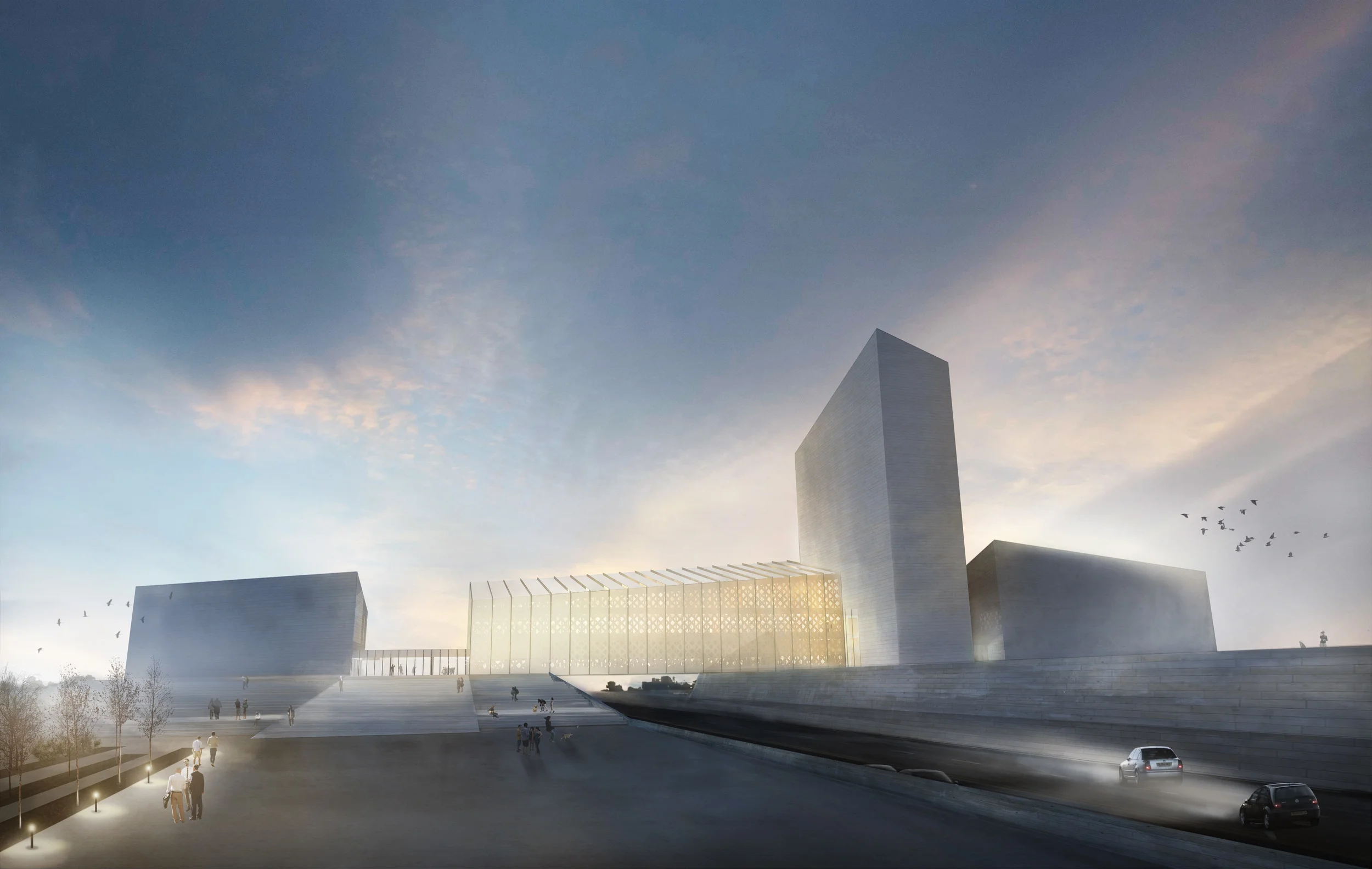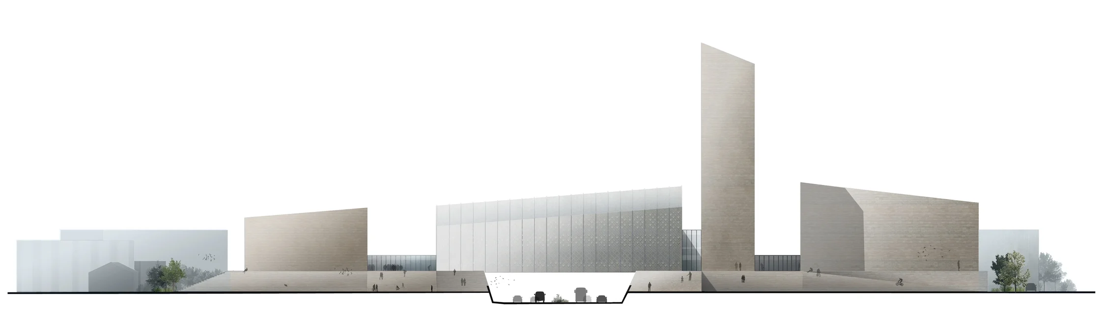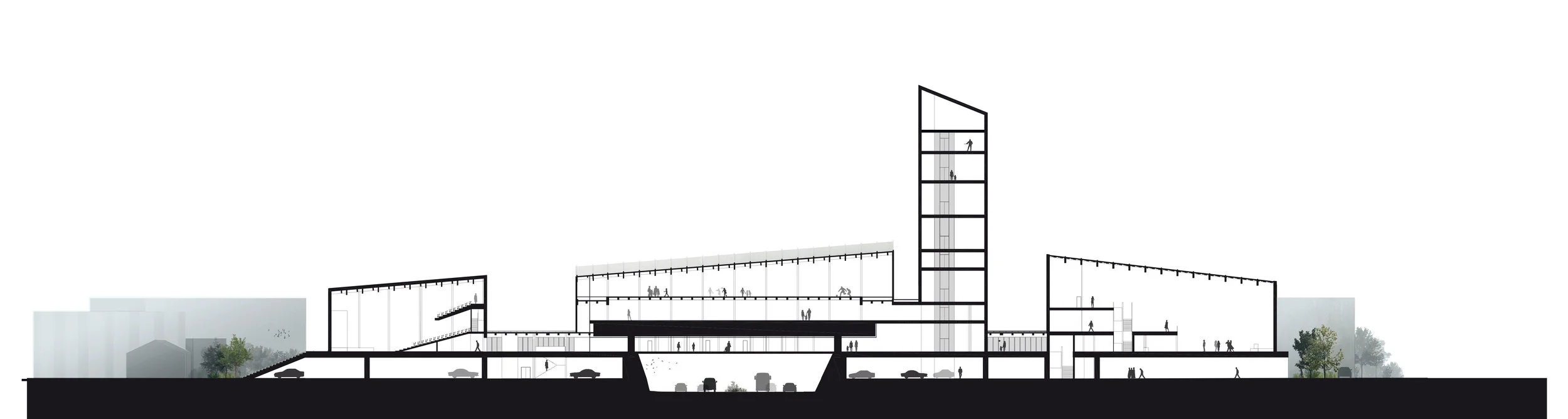 Ce projet concerne la rénovation et revalorisation du pont passant au-dessus de l'autoroute à proximité du marché de Rungis. Le sol semble se soulever pour permettre aux visiteurs d'accéder aux quatre volumes massifs en pierre et verre. Sous ce sol, se trouve l'ensemble des parkings des visiteurs. Une tour élevée se tient comme un bâtiment phare lui permettant d'être visible depuis les quatre coins de la capitale.